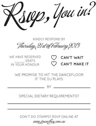 The bottom line is that theyre so unique theyd catch the attention of guests. Your invite wording is checked off your list and now you are wondering how formal funky or traditional you want to phrase your wedding RSVP card. Your wedding RSVP card wording can be straight-laced and formal or creative and funny.